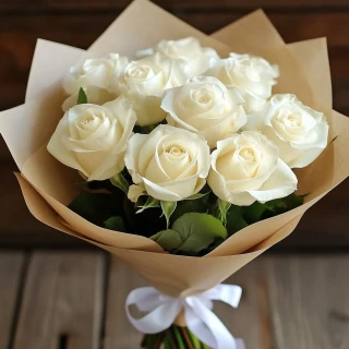 Подарите своим близким частичку весны и нежности с нашим уникальным букетом белых роз, завернутых в стильную крафтовую упаковку. Эти изысканные цветы символизируют чистоту и искренность, и станут прекрасным дополнением к любому празднику или важному событию. Вы можете выбрать количество роз — от 9 до 25 штук, в зависимости от вашего желания и повода.
