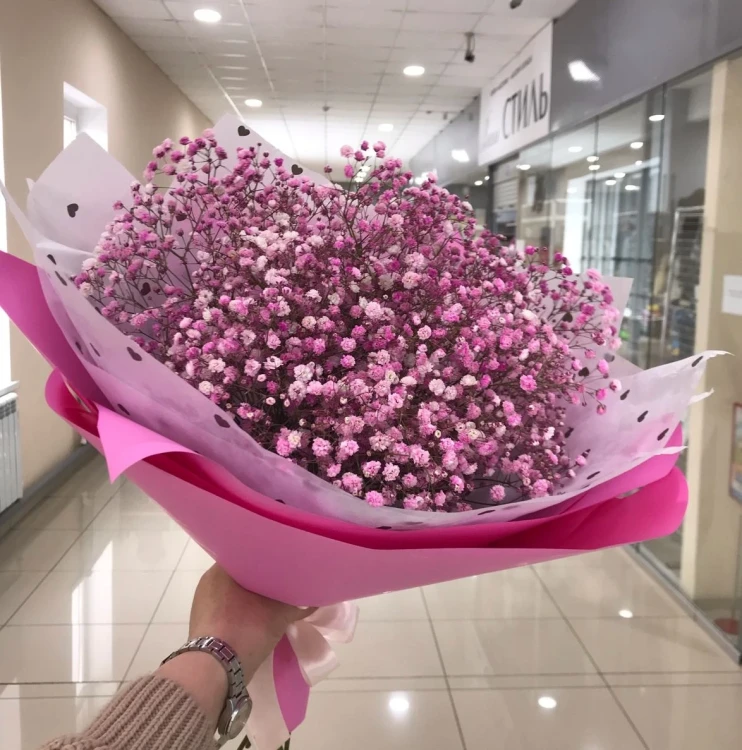 Этот великолепный букет из изысканной розовой и белой гипсофилы – идеальный подарок для тех, кого вы цените и любите. Нежные цветы создают атмосферу трепетного восторга и нежности, а красивая упаковка придает им особое очарование. Подарите этот букет и пусть его волшебство наполнит сердце вашего близкого радостью и теплом.